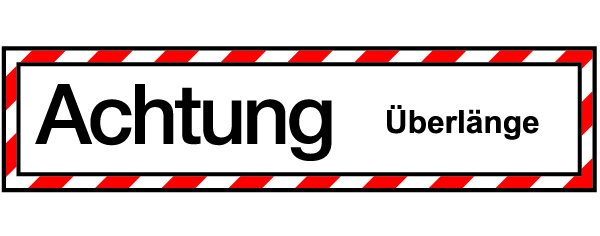 LKW-Schild „Achtung“ / 200 x 800 mm. Grund: weiß, Druck: schwarz, Rand: weiß-rot. Ausführung: Stahlblech, „Überlänge“